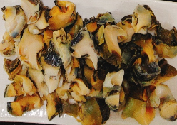 또, 삶은 소라를 반으로 자르면 타액선(침샘)이 있습니다. 이 부분은 약한 독성이 있어 그냥 먹으면 어지럼증이나 탈이 날 수 있어 제거하고 드시는 것이 좋습니다.