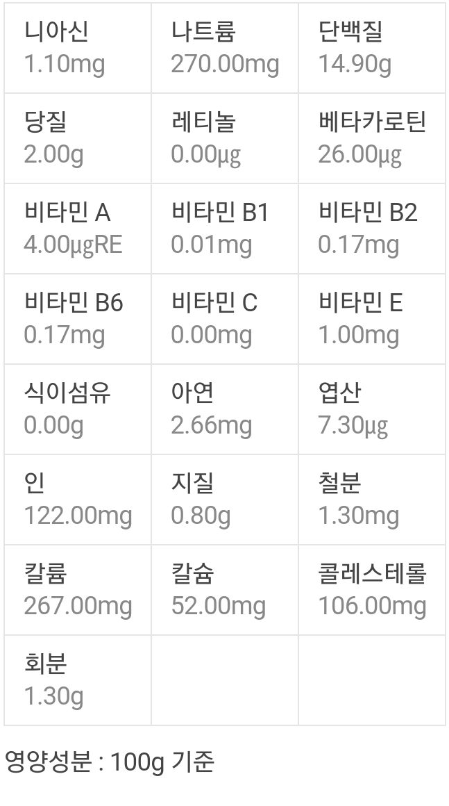 생소라는 100g당 총열량이 79kcal이고, 조성은 수분 78.6g과 단백질, 지방, 탄수화물, 회분, 비타민A·비타민B1·비타민B2·니아신·비타민C 등을 함유하고 있다고 합니다.