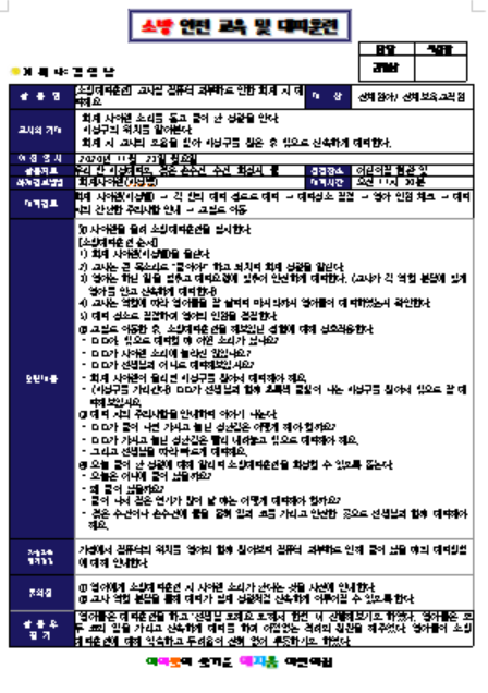 소방 안전 교육 및 대피훈련 일지 예시2