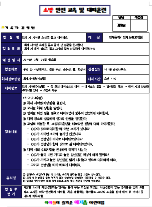 소방 안전 교육 및 대피훈련 일지 예시1
