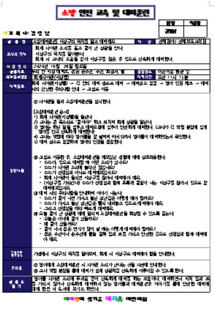 소방 안전 교육 및 대피훈련 일지 예시1
