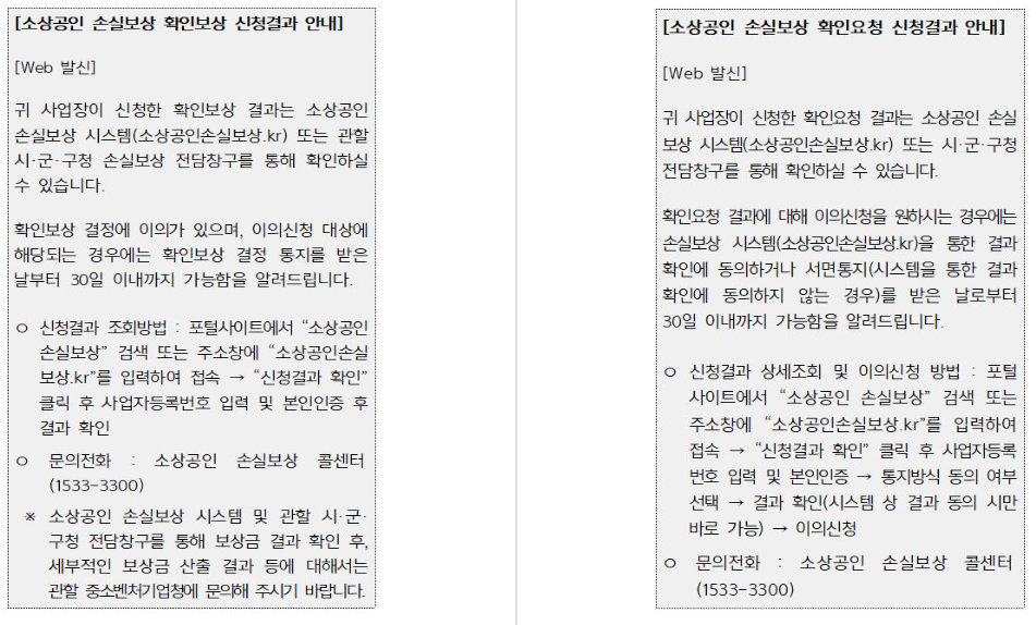 소상공인 손실보상 안내문자