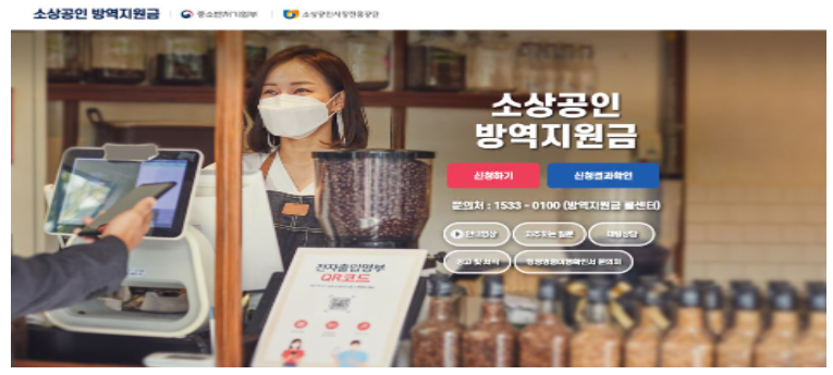소상공인 방역지원금 신청 전용사이트 메인화면