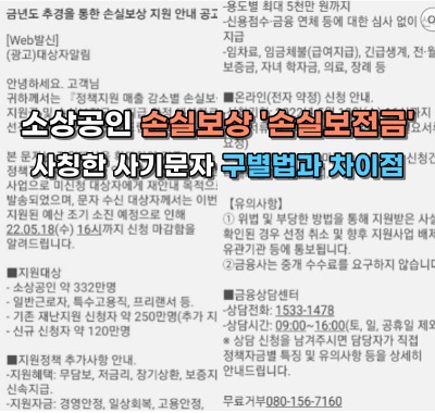 소상공인 손실보상 '손실보전금' 사칭한 사기문자 주의(구별법과 차이점 확인)