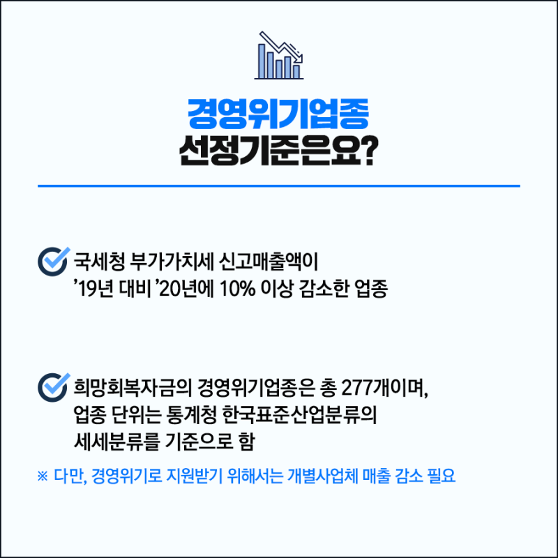 7. 소상공인 희망회복자금 경영위기업종 선정기준