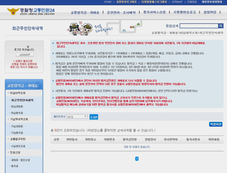 로그인 후 좌측 상단의 '최근 무인단속내역'을 확인합니다.