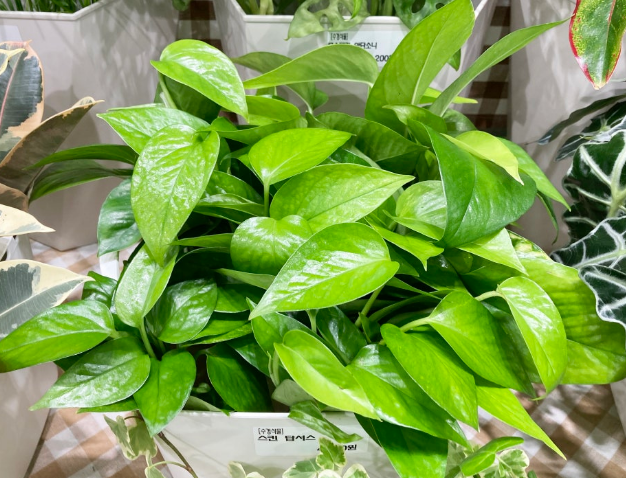 반음지에서도 잘 자라는 스킨답서스는 공기정화식물 가운데 가장 관리하기 쉬운 식물로 미세먼지 뿐만 아니라 일산화탄소 제거능력도 뛰어나서 주방에 두기에 좋은 식물이라고 합니다.