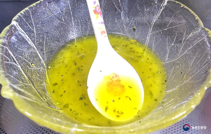 4. 그릇에 먹을 만큼 담고 드레싱 소스를 절반가량 부어 간이 배게 해 줍니다.