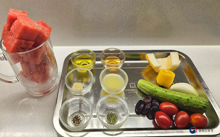 오늘은 여름 과일 대표인 수박 요리(수박 리코타 치즈 샐러드 & 에멘탈 치즈 냉수박 수프) 및 효능을 알아보겠습니다.