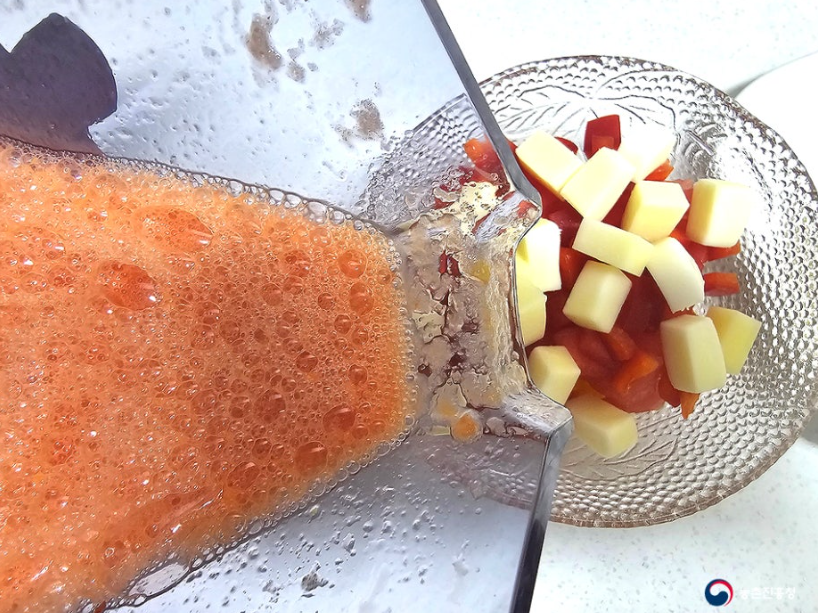 Tip : 잘게 썰어 놓은 파프리카도 조금 넣어 갈아주었습니다.