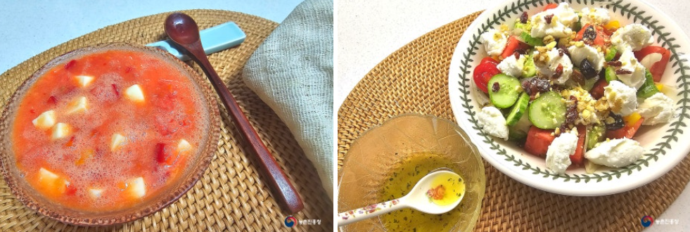 수박 요리(수박 리코타 치즈 샐러드 & 에멘탈 치즈 냉수박 수프) 및 효능