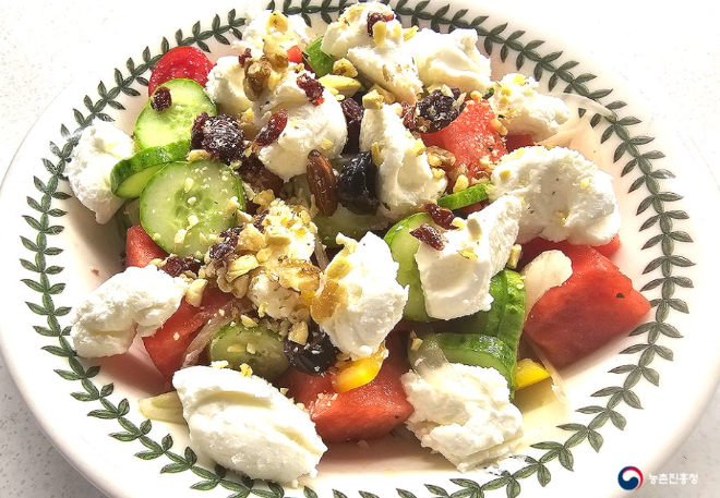 매해 먹는 수박이 치즈와 이렇게 찰떡궁합인지 몰랐습니다.