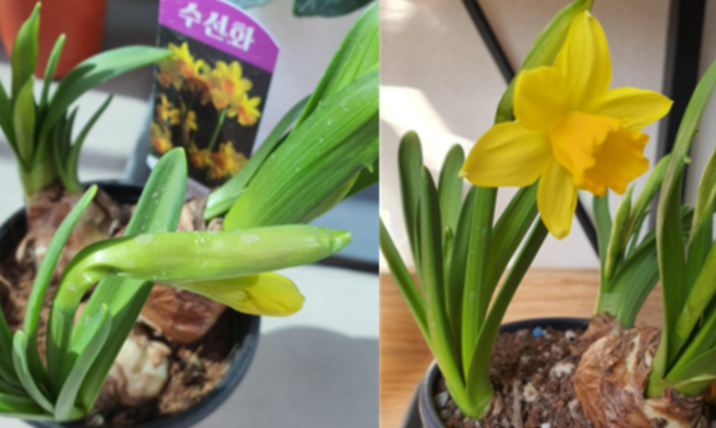수선화가 자라기 쉬운 온도는 야간 13~15℃, 주간은 야간보다 5~10℃ 높은 온도가 좋고 따뜻할수록 개화가 빨라진다고 합니다.