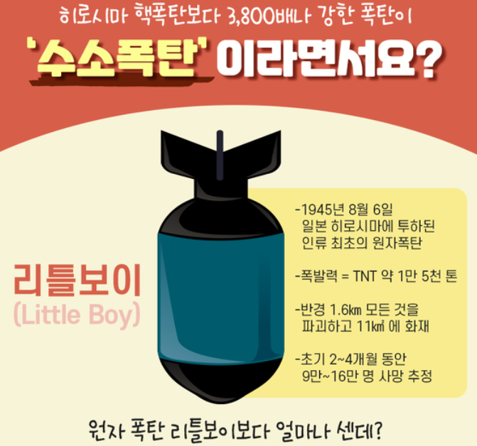 역사상 가장 강력한 폭탄은 수소폭탄이라고 합니다. 하지만 수소폭탄과 수소에너지는 원리 자체가 다르다고 합니다.
