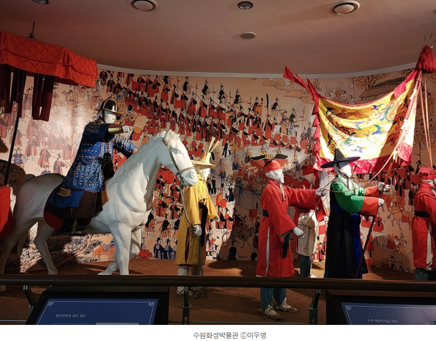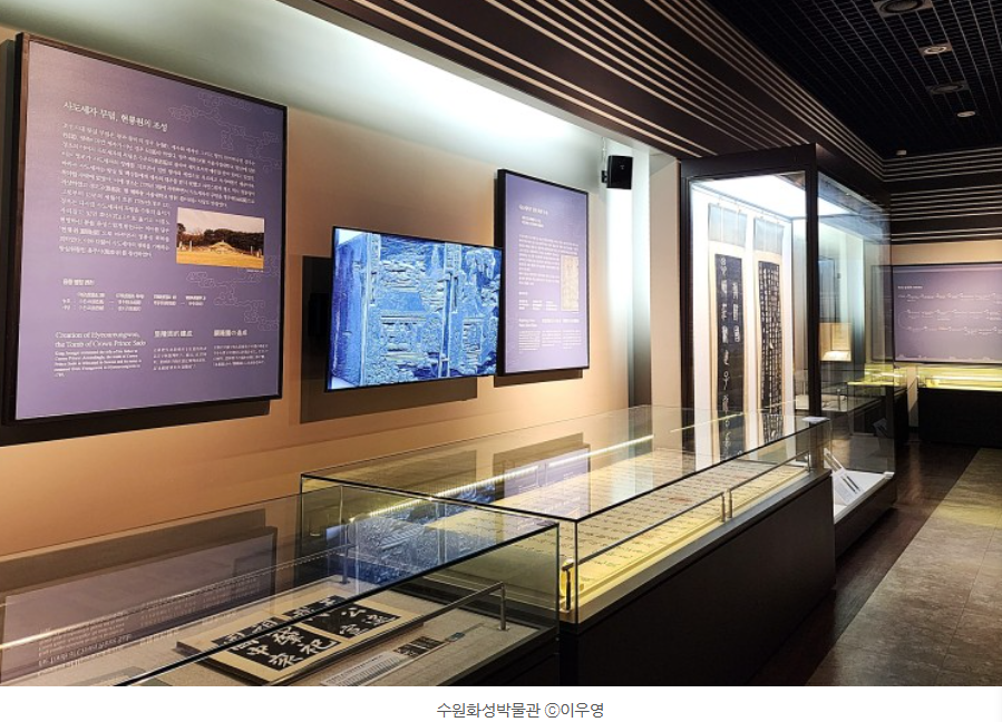 전시실에서 정조의 부모님에 대한 효도와 수원화성 축성을 통한 왕권을 강화하고자 했던 정조의 의지와 애민정신을 엿볼 수 있습니다.