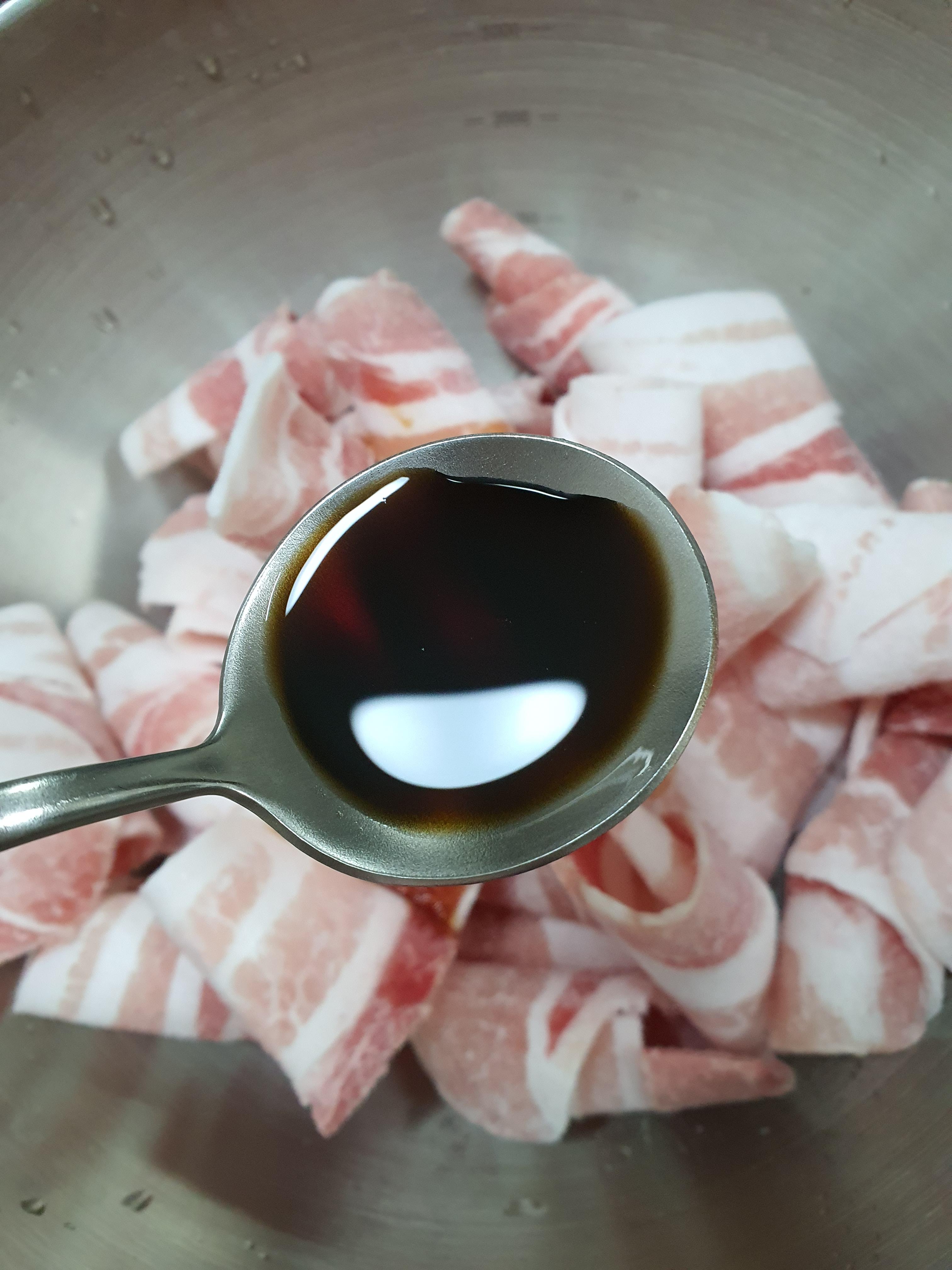 또, 굴소스 2숟가락, 소금 반 숟가락, 설탕 1숟가락, 후추 약간을 넣고 밑간을 해두었습니다.