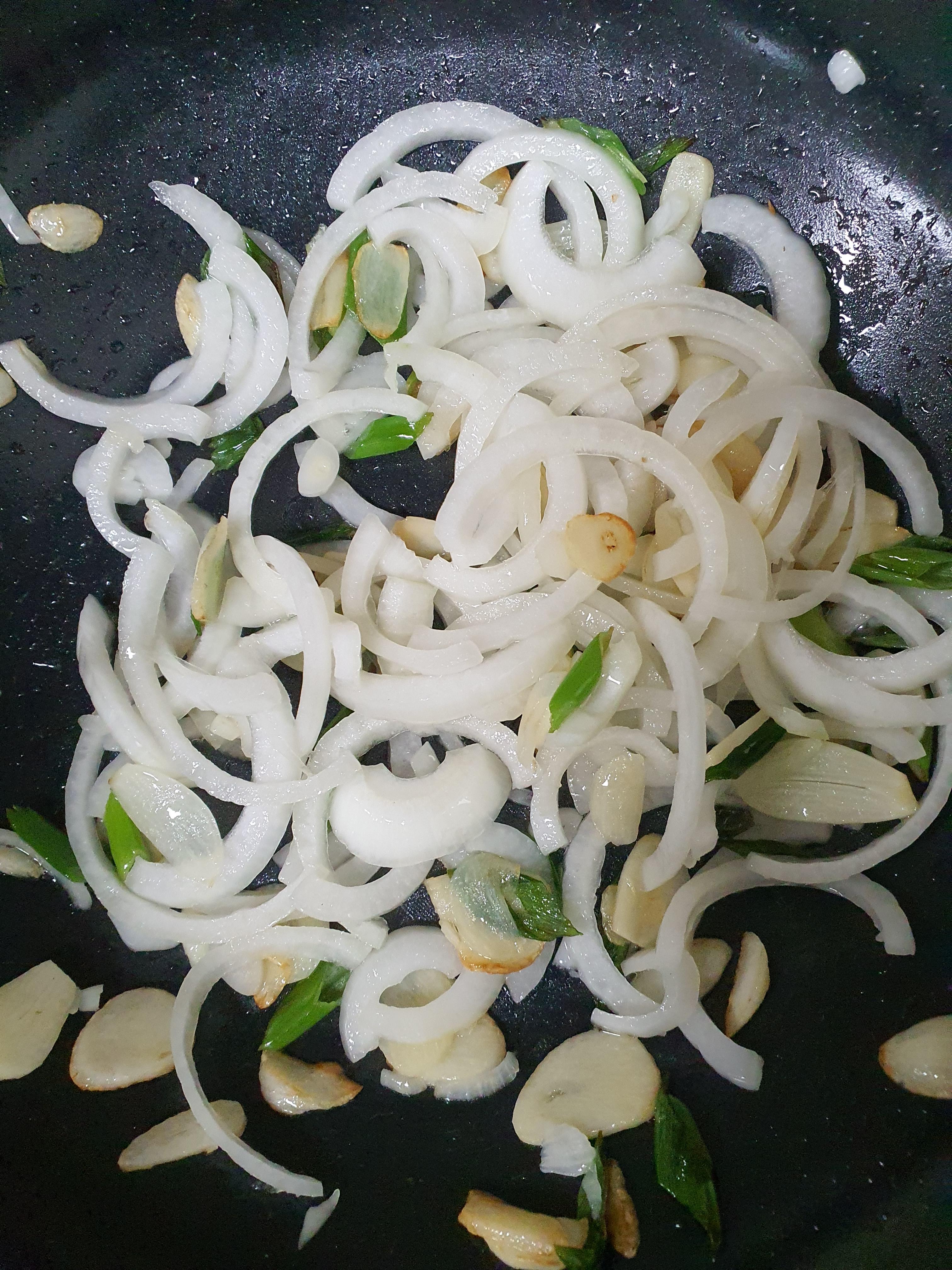 5. 어느정도 익으면 양파를 살짝 볶아줍니다.