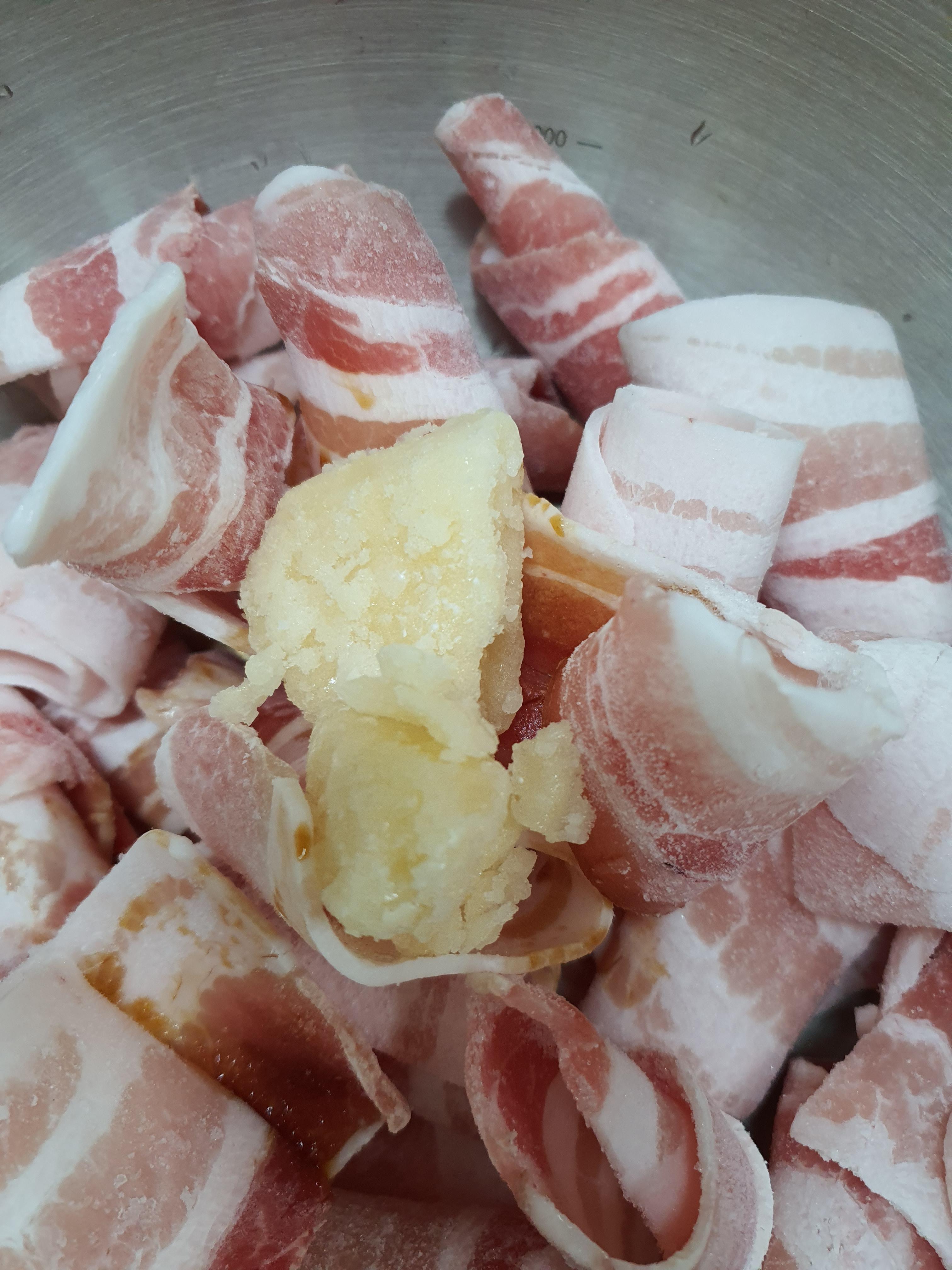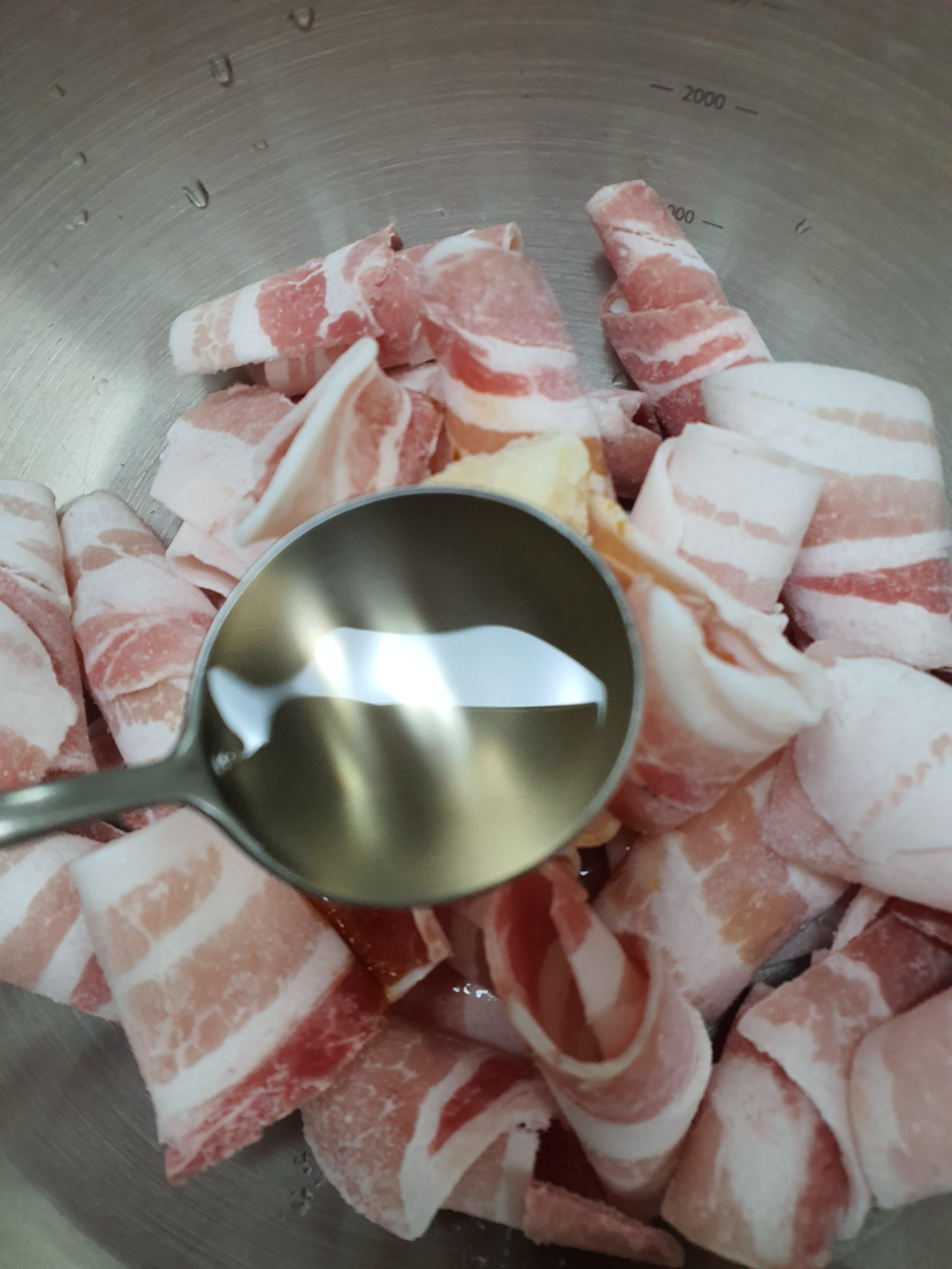 또, 굴소스 2숟가락, 소금 반 숟가락, 설탕 1숟가락, 후추 약간을 넣고 밑간을 해두었습니다.