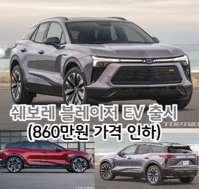 오늘은 쉐보레 블레이저 EV 출시(860만 원 가격 인하) 소식을 전해드리겠습니다.