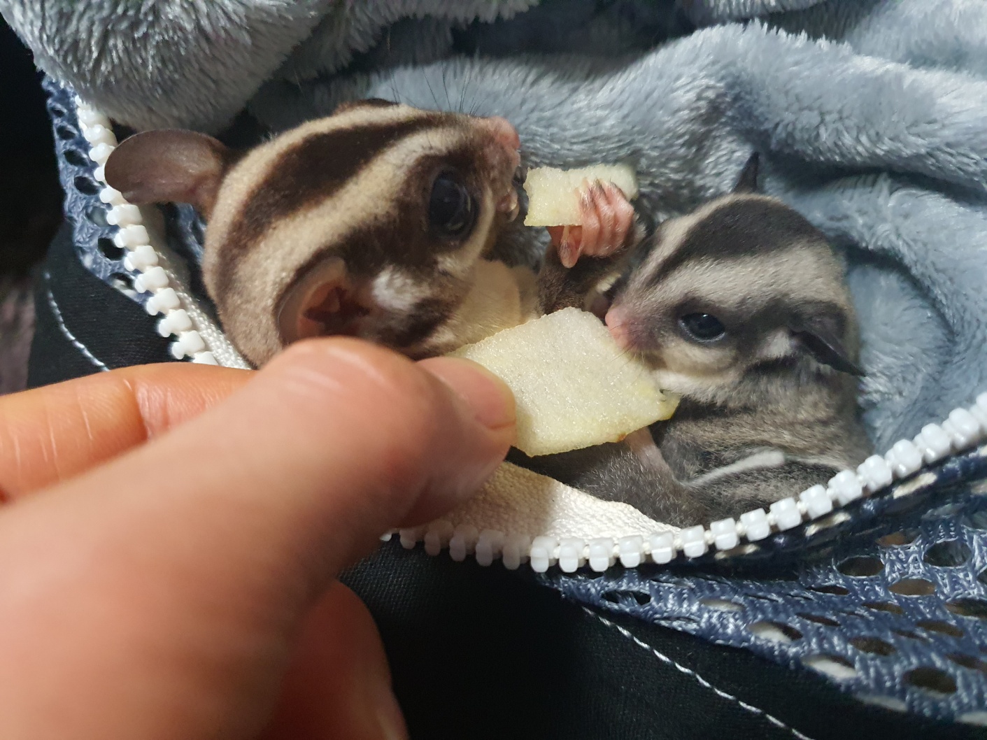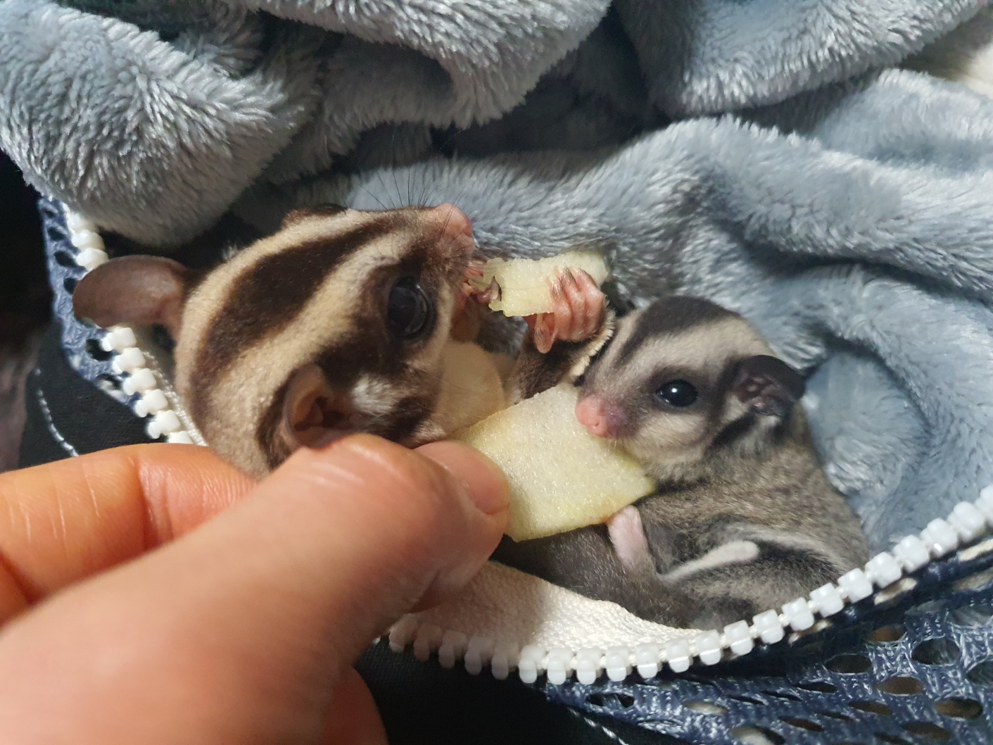 검색해 보니 슈가글라이더의 임신기간은 약 3주이며 생후 2~4개월은 육아낭 속에서 기르고, 그 후에는 육아낭 밖으로 나와 30일 정도 엄마젖을 먹고 자란다고 합니다.