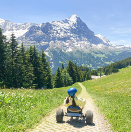 스위스 여행하면 '액티비티'도 빠질 수 없다고 합니다. '마운틴 카드'는 피르스트의 인기 액티비티 중 하나입니다. 카트를 타고 빠른 속도로 질주하는 스릴 넘치는 액티비티입니다. 게다가 그려놓은 듯한 자연 풍경까지 낼다보며 갈 수 있다는 점이 가장 큰 장점입니다.