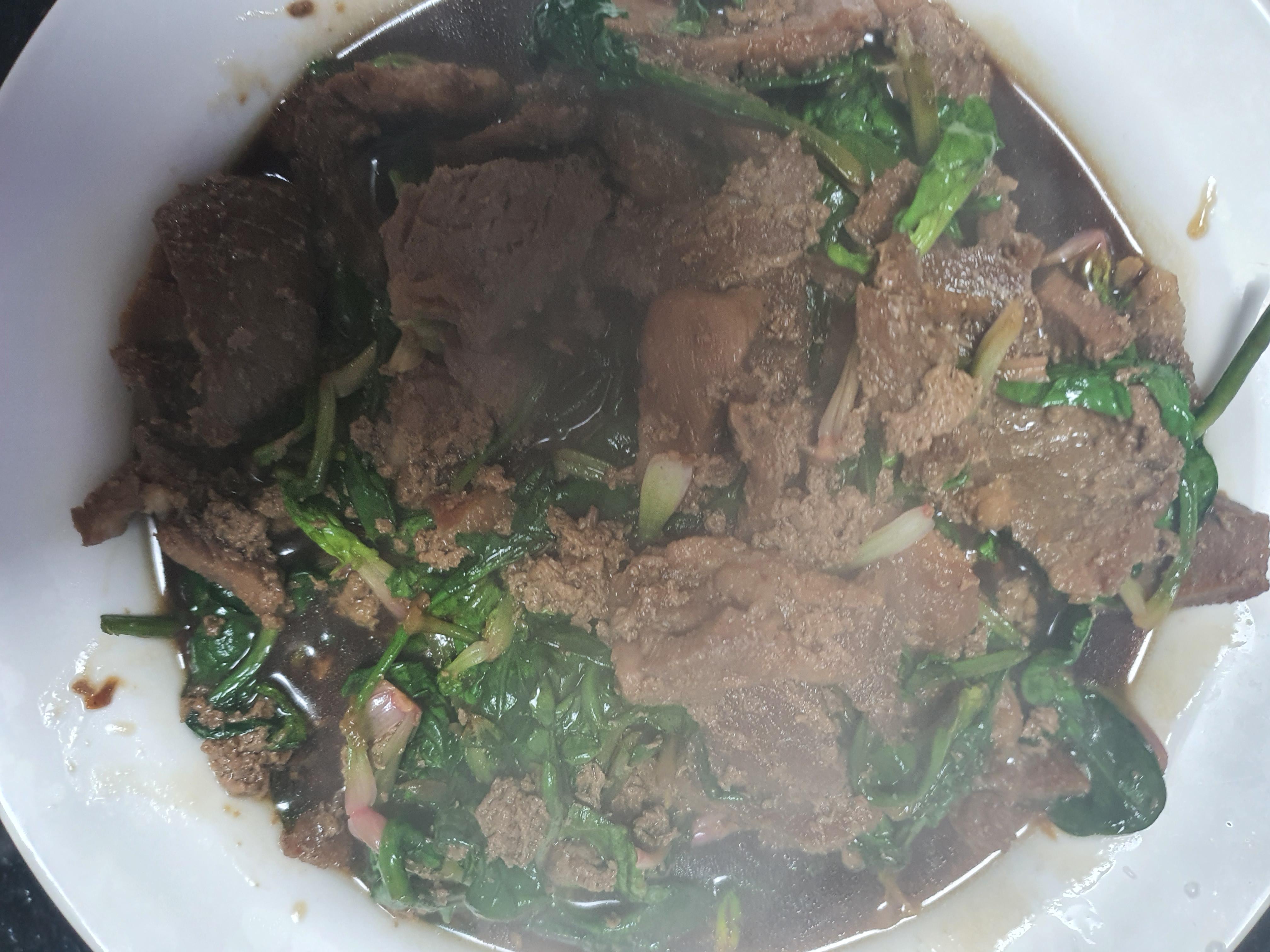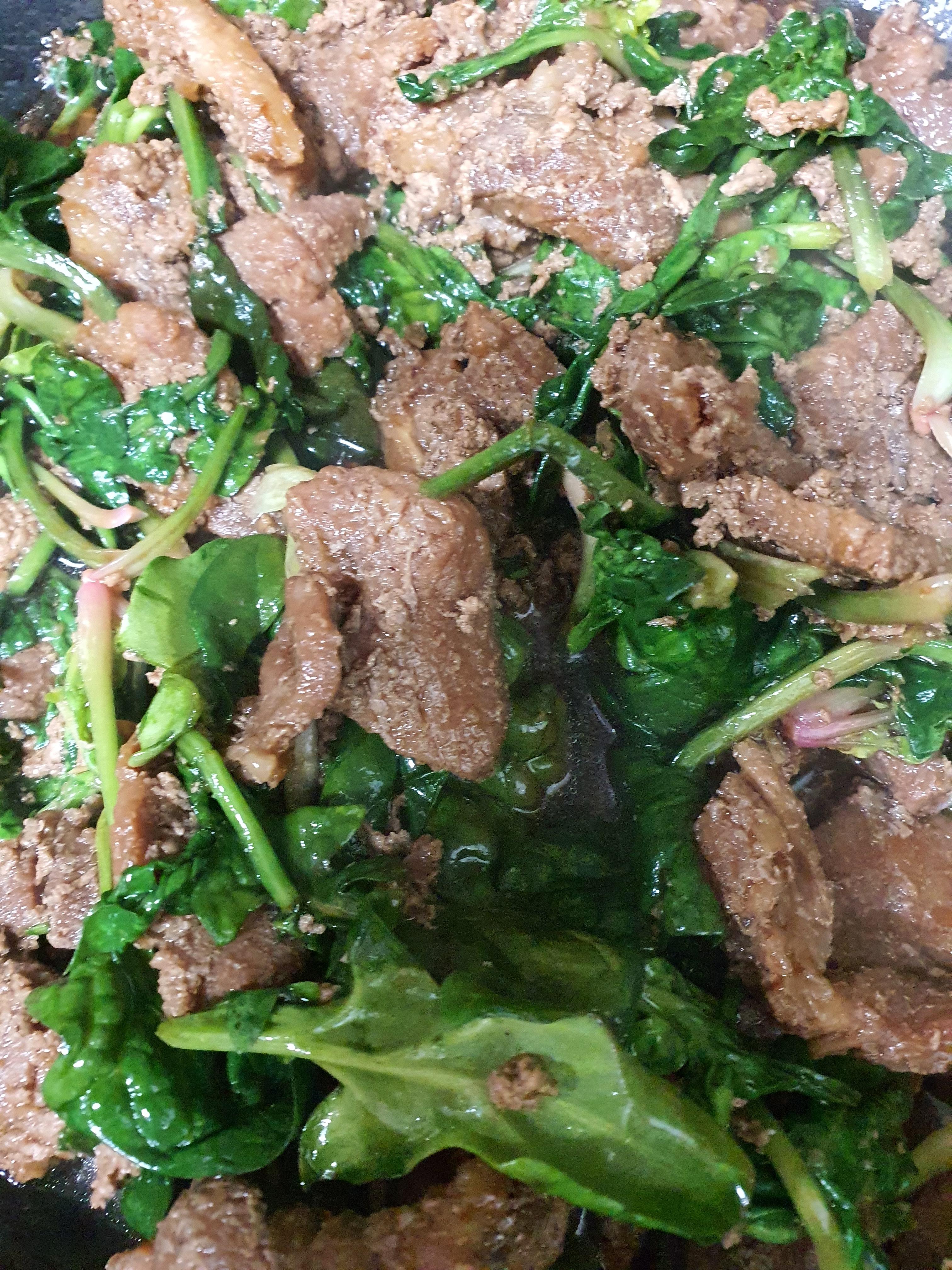 시금치는 고기의 비린 맛도 잡아주고 시금치는 맛있게 양념이 되어있어 정말 맛있습니다.