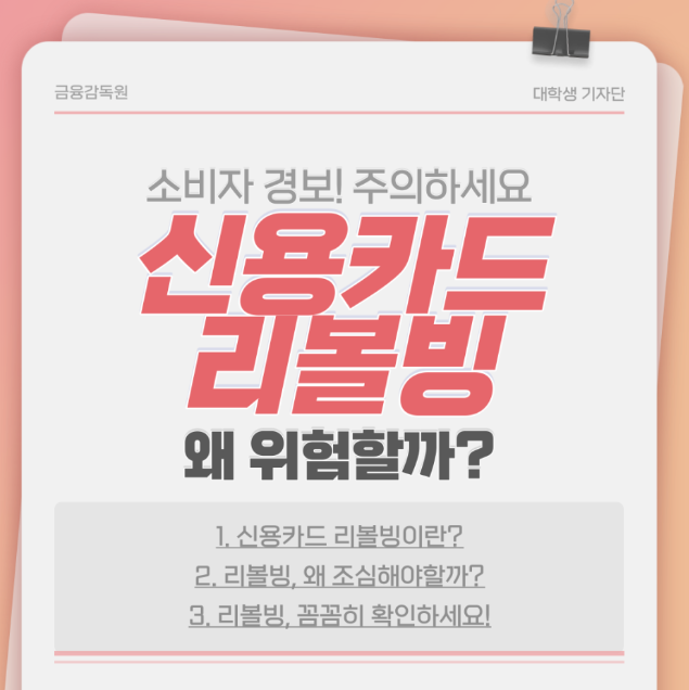 오늘은 리볼빙은 무엇인지 그리고 왜 주의해야 하는지 알아보겠습니다.