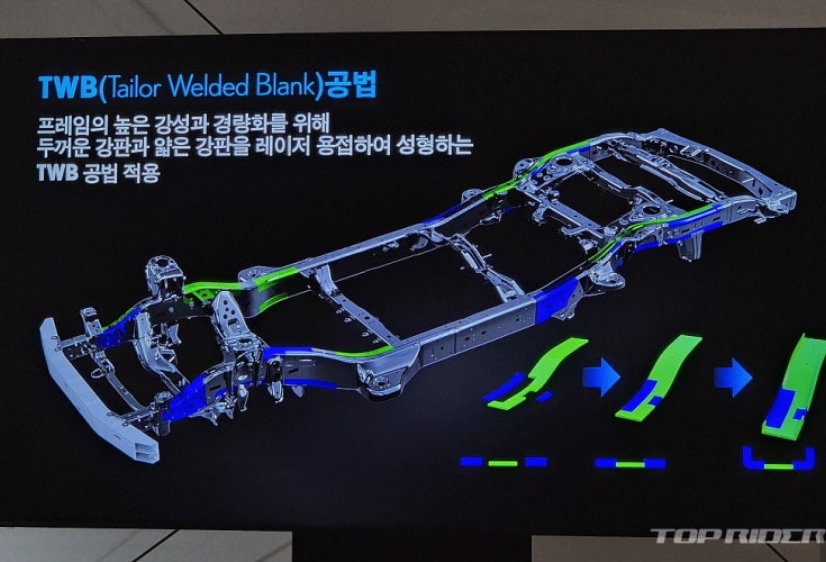 4세대 렉서스 LX 700h는 래더 프레임 보디 기반의 SUV로 TNGA-F 신규 플랫폼을 통해 무게는 줄이고, 차체 강성은 높였습니다. 특히 하이브리드 모델인 700h의 경우 내연기관 모델과 동일한 수준의 오프로드 성능을 확보하기 위해, 하부 프레임을 일부 성형하는 과정까지 거쳐 완성도를 높였다고 합니다.