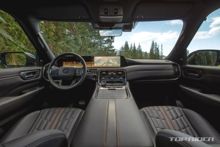 전면부에는 독특하게 디자인된 주간주행등과 헤드램프, 대형 그릴이 탑재됐습니다. 18인치 휠을 기본으로 최대 22인치 휠을 선택할 수 있습니다. 신형 아르마다 실내는 인피니티 QX80 레이아웃과 유사합니다. 12.3인치 디지털 계기판, 14.3인치 디스플레이, 파노라마 문루프 등이 배치됐다고 합니다.