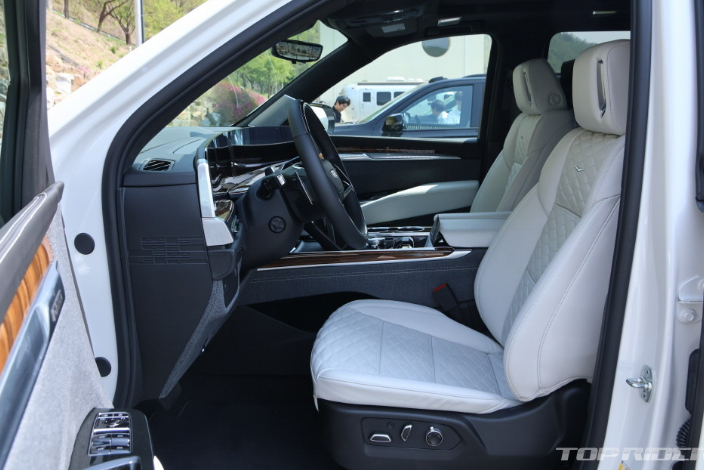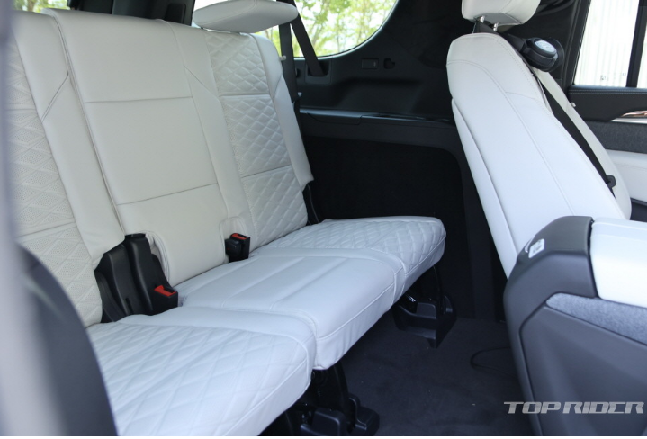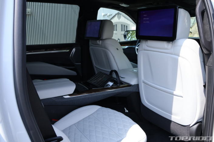 2열 이그젝큐티브 시트 패키지는 14WAY 전동 시트, 2열 커맨드 센터 및 접이식 테이블로 구성됐습니다. 신형 에스컬레이드 ESV 2열 공간은 비행기 퍼스트 클래스를 지향하는 만큼 안락합니다. 2열 시트의 전체적인 쿠션감이나 착좌감이 1열 시트보다 훨씬 좋습니다.