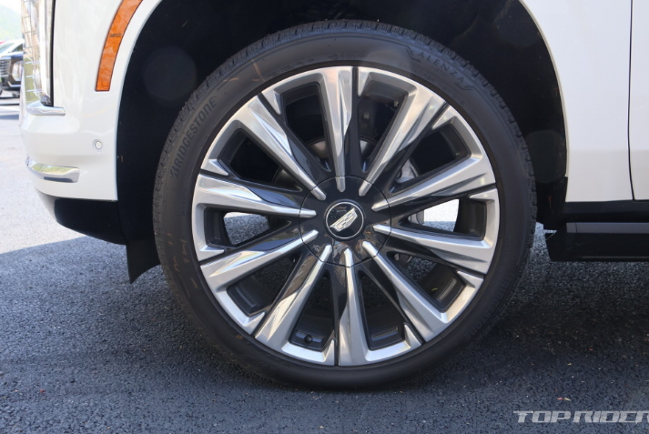 측면부는 짧은 전면 오버행과 긴 리어 오버행을 바탕으로 후륜구동 기반 SUV 특유의 프로포션이 구현했습니다. 새롭게 도입된 24인치 휠은 캐딜락 역사상 가장 큰 사이즈입니다. 신형 에스컬레이드 ESV는 리어 오버행이 길어 차선 변경 시 거리감을 적응해야 합니다.