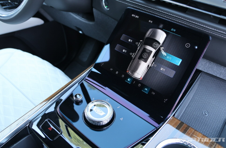 다만 2열 시트 등받이 각도를 많이 눕힐 수 없는데, 사고 시 탑승객 보호를 위한 안전 설계가 이유입니다. 2열 시트 마사지는 3단계로 조절할 수 있으며, 강도가 생각보다 강합니다. 2열 커맨드 센터로는 도어 여닫이, 1열 동승석 위치 조정, 2열 시트 제어가 가능합니다.