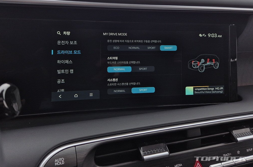 고속주행 시에는 부드러움을 기반으로 댐퍼의 움직임이 일부 조여지는데, 확연히 구분되는 수준은 아닙니다. 스포츠 모드에서도 유사한데, 속도에 따라 댐퍼 감쇠력이 이미 변화되기 때문에 차이가 적게 느껴질 수 있습니다. 기존 대비 경쾌하지만 고속주행 시 움직임과 안정감은 한결 좋아졌습니다.