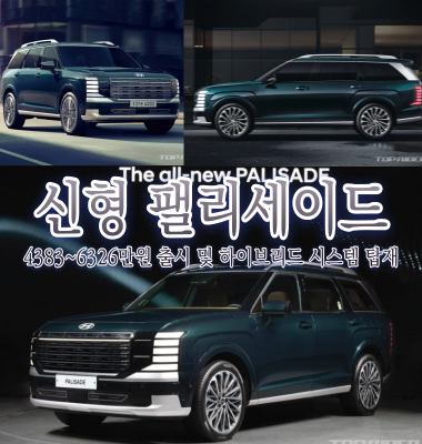그럼 여기까지 신형 팰리세이드(The all-new PALISADE) 4383~6326만원 출시 및 하이브리드 시스템 탑재 소식을 전해드렸습니다.