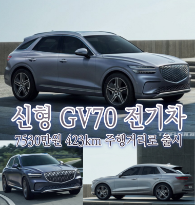 오늘은 제네시스 신형 GV70 전기차 7530만 원 423km 주행거리로 출시한다고 하여 소식 전해드리겠습니다.
