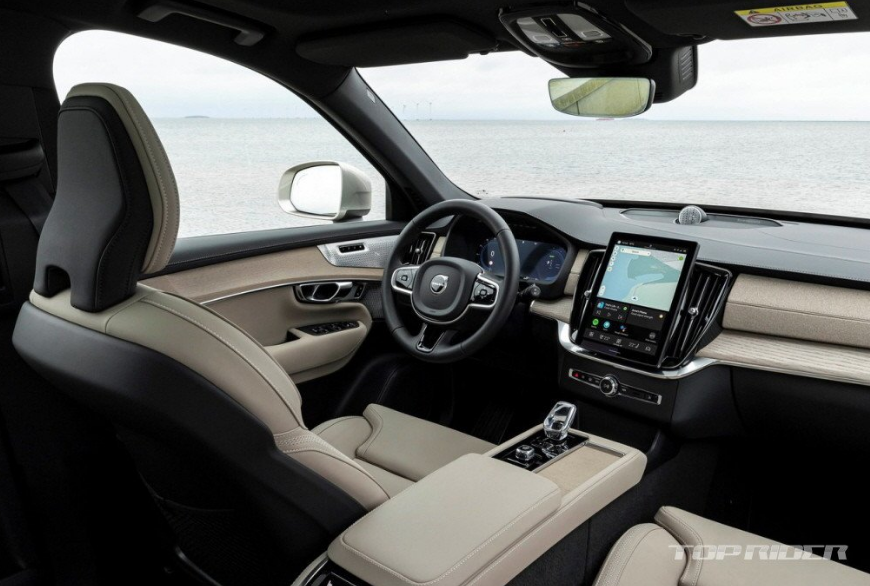 신형 XC90 실내에는 기존 9인치 디스플레이를 대체하는 11.2인치 디스플레이, 송풍구가 통합된 대시보드, 재활용 소재로 제작된 가니쉬, 센터콘솔 컵홀도, 수납공간과 분리된 스마트폰 무선 충전 시스템 등이 배치됐다고 합니다. 디스플레이 픽셀 밀도가 21% 높아져 선명도가 향상됐다고 합니다.
