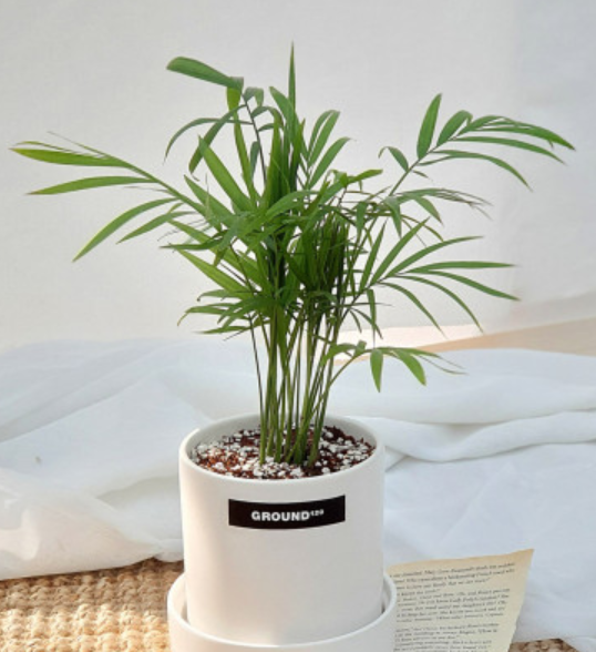 테이블 야자라고 불리기도 하는 팔러 팜은 실내 독소와 암 유발 인자를 제거하는 공기 청정기 역할을 한다고 합니다.