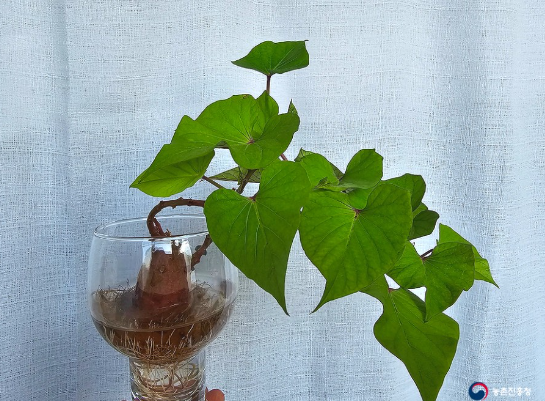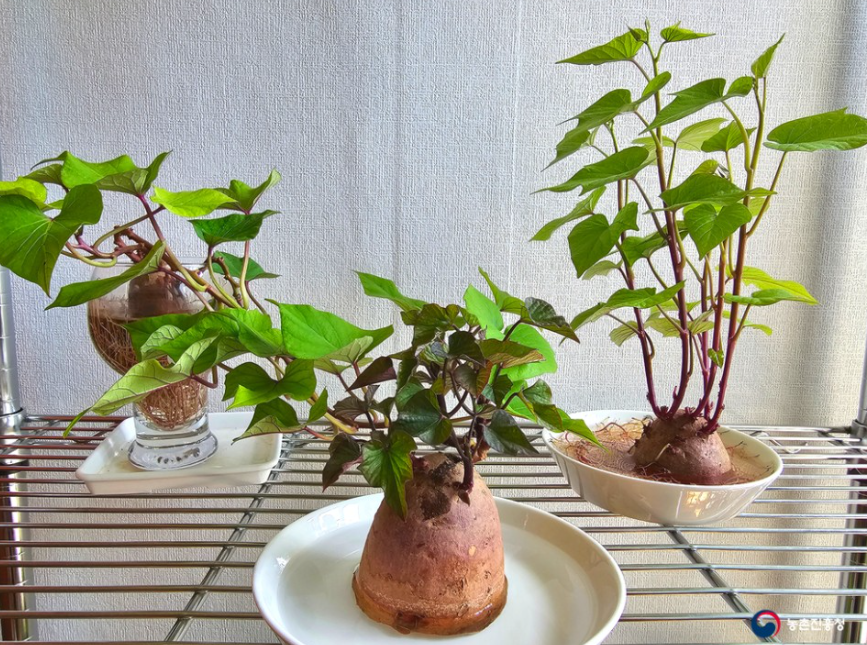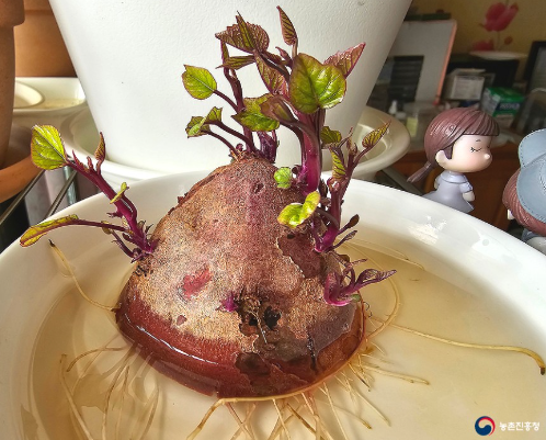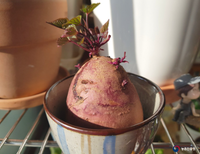 당도가 높아 꿀고구마라고 불리는 고구마도 물에 담가뒀을 뿐인데 무척 잘 자랍니다.