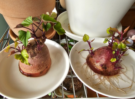 3월경 호박고구마(좌), 자색고구마(우)