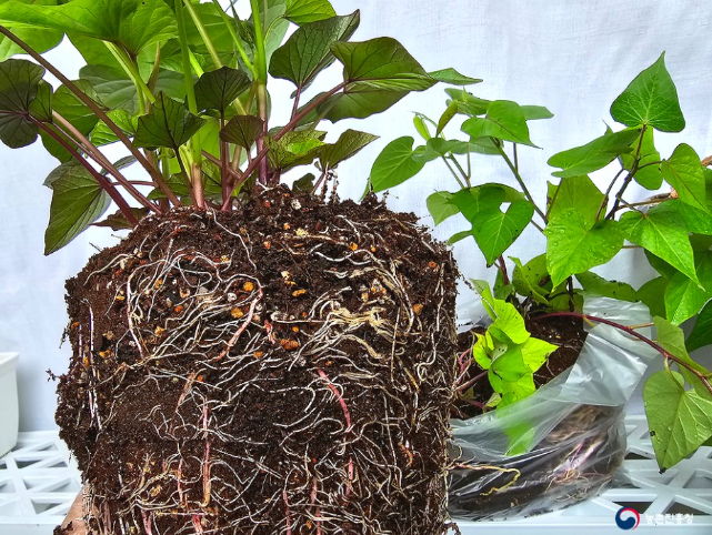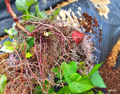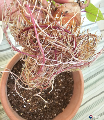 위 사진은 꿀고구마 뿌리인데 모체보다 더 자란 것 같습니다.