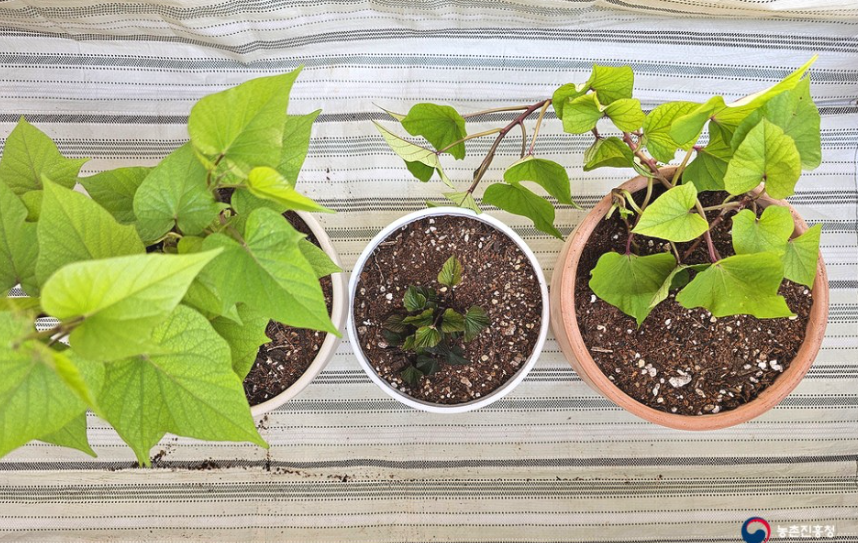 꿀고구마, 호박고구마, 자색고구마 모두 화분으로 옮겨주었습니다.
