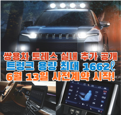 오늘은 6월 9일 실내 공개하고 6월 13일 사전계약이 시작되는 쌍용차 토레스에 대해 알아보겠습니다.