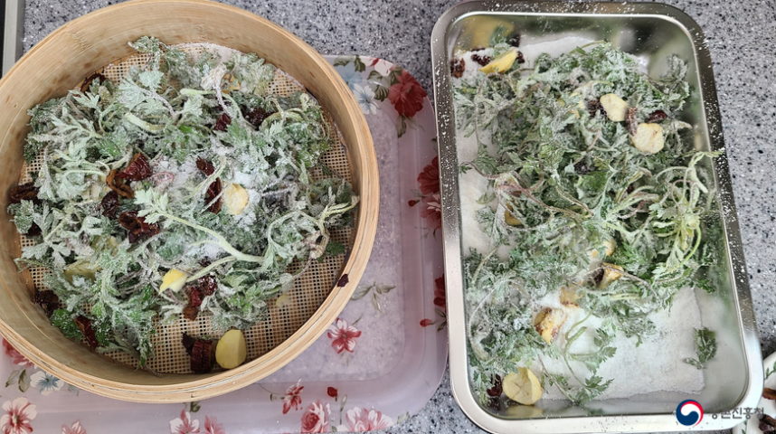 집에서 봄나물의 향미와 쑥의 영양분을 느껴볼 수 있는 음식을 소개해 드리겠습니다. 파릇파릇 돋은 어린 쑥을 뜯어다 쌀가루와 버무려 찌는 쑥버무리입니다.