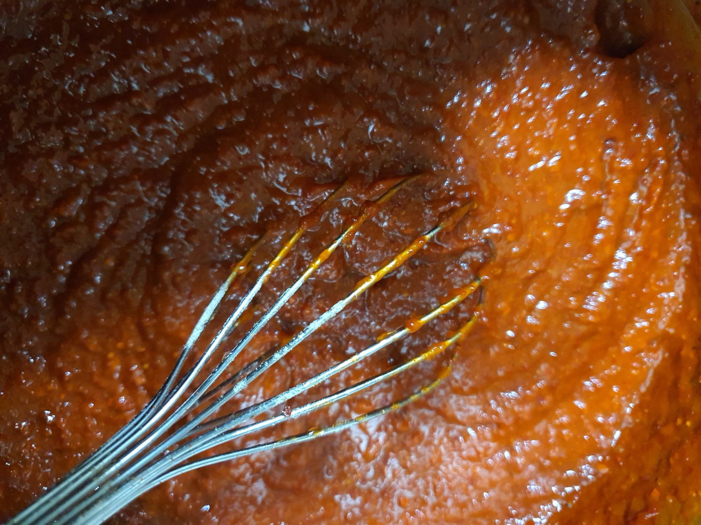 그리고, 불을 켜고 계속 저어주면서 죽 쓰듯이 끓기 시작하면서 질퍽거리면 불을 끄고 식히면 됩니다.