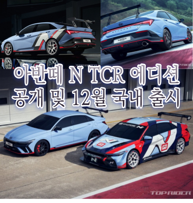 그럼 여기까지 아반떼 N TCR 에디션 공개 및 12월 국내 출시 소식을 전해드렸습니다.