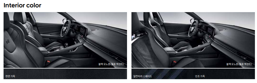 아반떼 N의 실내는 N 스티어링 휠, N 쉬프터, N 시트, N 도어스커프, 메탈페달 등 곳곳에 N 브랜드 전용 아이템을 적용함으로써 N 패밀리 룩을 실현했을 뿐 아니라 일상주행부터 역동적인 주행까지도 운전자가 편안히 운전에 집중할 수 있도록 최적의 운전환경을 조성하는데 주안점을 두었다고 합니다.