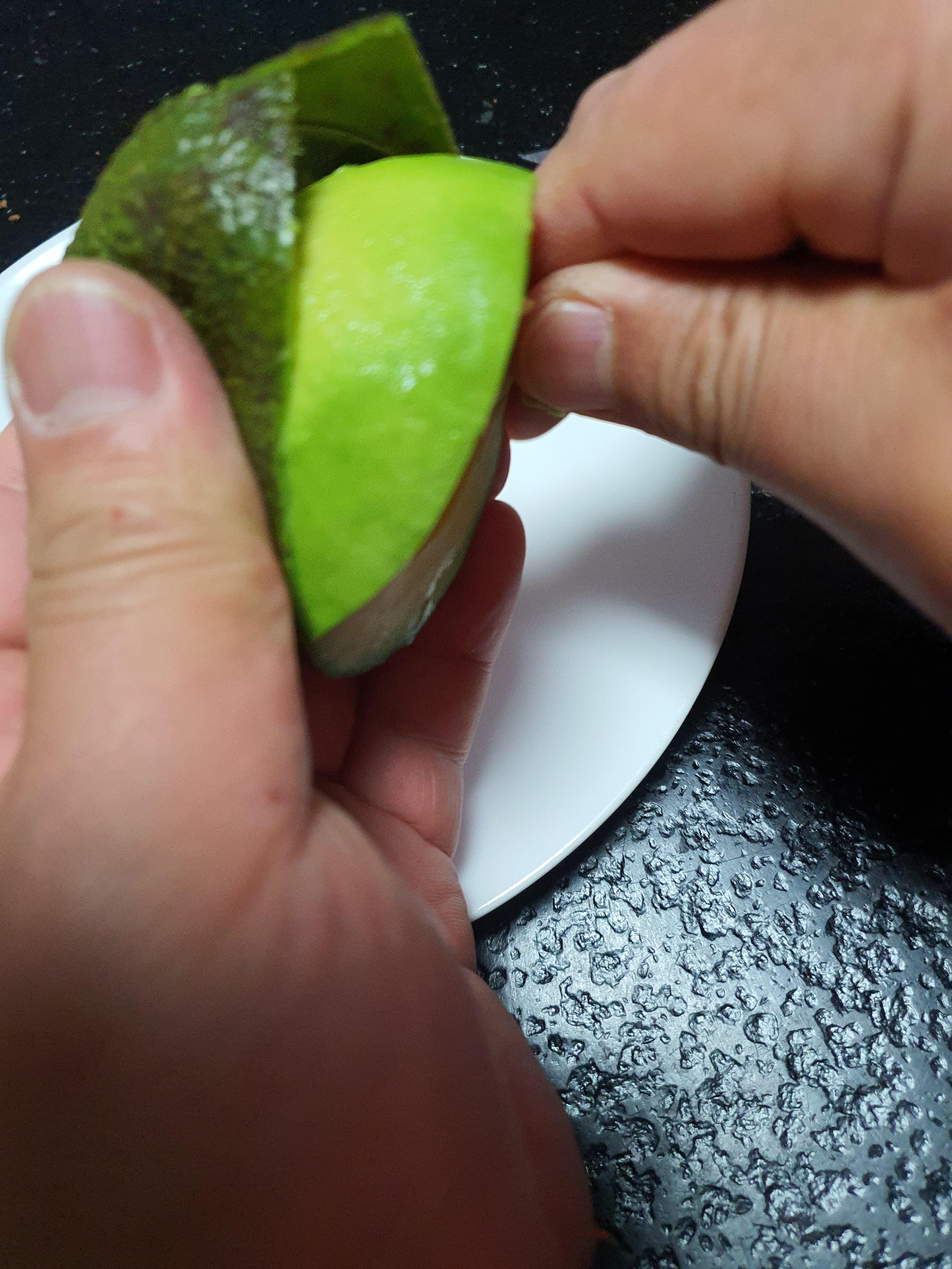 아보카도 익은 정도에 따라 잘 분리가 되기도 하고 좀 지져분하게 분리가 되기도 합니다.