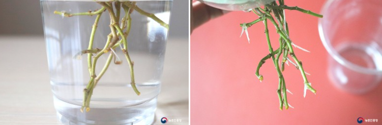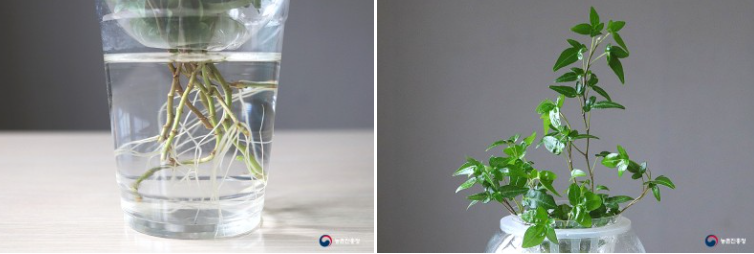 ✔ 수경재배로 키울 때 주의해야 할 점은 물이 썩지 않도록 1~2주에 한 번씩은 갈아주고, 화병에 녹조가 생기지 않도록 직사광선에 많이 노출되지 않는 곳에 놔줍니다.