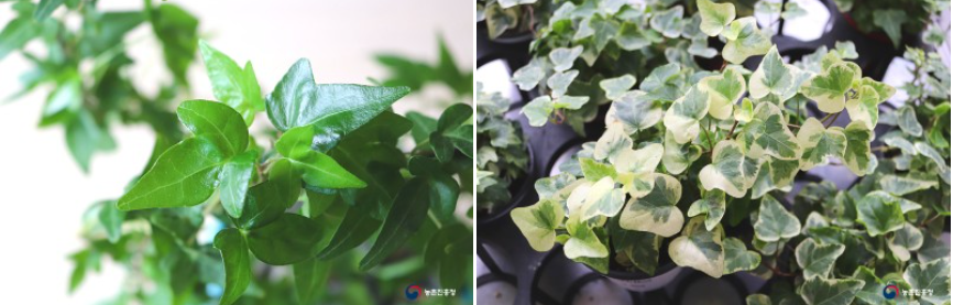 일반적으로 잎 끝이 3~5개로 갈라져 있고, 색깔은 품종에 따라 다양합니다. 잎에 얼룩무늬가 있는 반딧불이 아이비의 경우, 빛이 부족하면 색이 탈색될 수 있기 때문에 빛을 충분히 쬐어주는 것이 중요합니다.