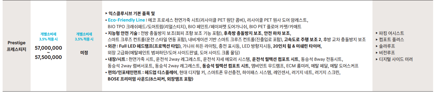 프레스티지 5천7백만원부터 7천7백5십만원까지